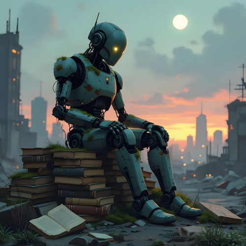 He is a walking library. But now the world has ended and no one will write another book anymore. Pity him.